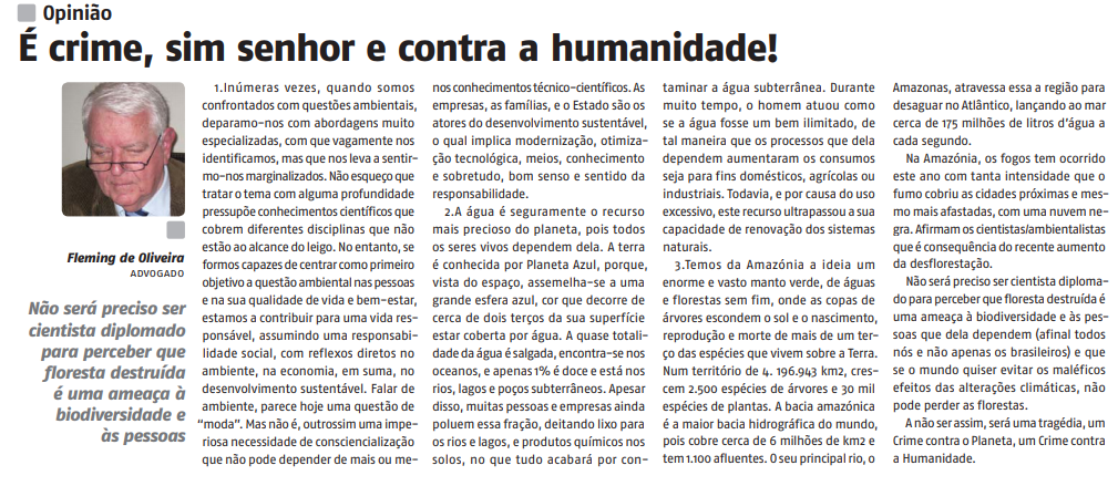 veementemente a atenção para os problemas da desflorestação, desde que Jair